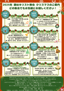 12月14日(日)10:30~12:00に、3階礼拝堂にて行われます。